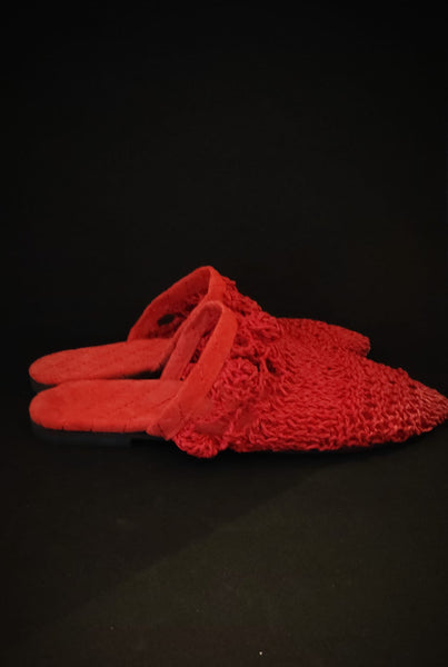 Süet Rafya Babouche - 4 Renk Seçenekli